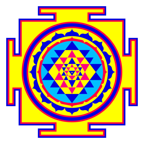 Шри Янтра (рис. 1) – главная янтра в тантризме, и задача работы с ней – осознание единства Мира, его эволюции и своего места в нём, обретение целостности, гармоничное развитие и взаимодействие с реальностью, постижение многомерности Мира в разнообразных аспектах и проекциях.