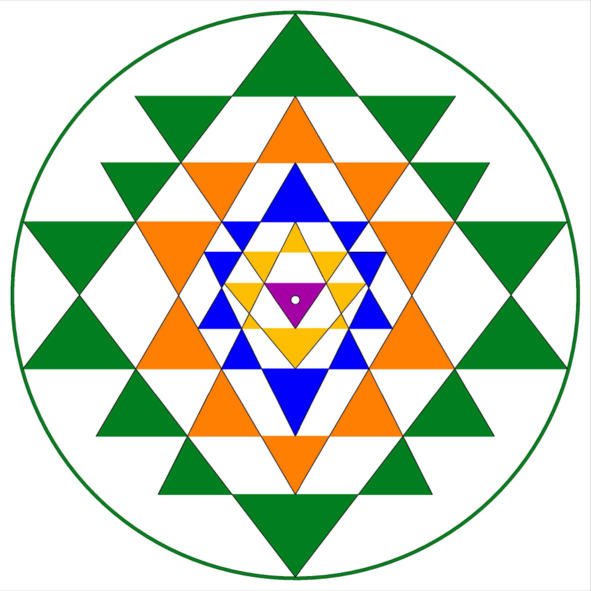 Рис. 5. Центральное ядро Шри Янтры с шестью вершинами треугольников, лежащими на окружности. Цветовое решение