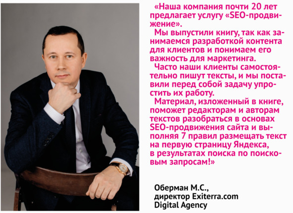 Книга написана экспертами Exiterra.com Digital Agency и поможет вам познать основы SEO-оптимизации текстов и покорить вершины ТОП-выдачи поисковых систем.