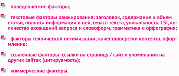 У поисковых систем текстовые факторы ранжирования в целом похожи: