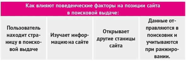 С 2014 года поведенческие факторы пользователей в бо́льшем приоритете у поисковых систем. Поисковые алгоритмы учитывают время нахождения пользователя на сайте и активность его поведения.