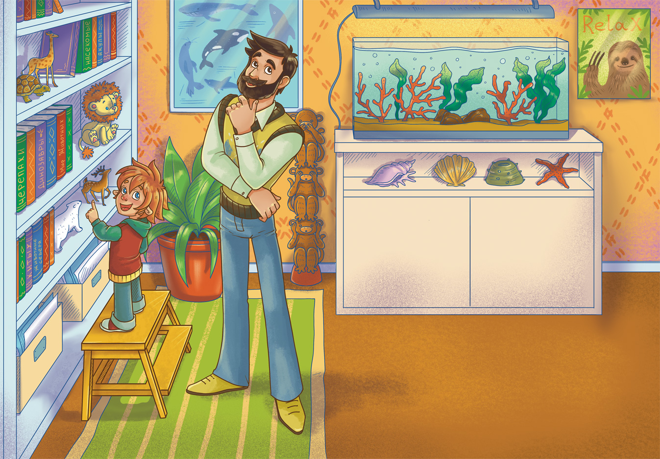 – Как много здесь книг про животных. А некоторые ещё и с картинками, так интересно! Дядя Кузя, как хорошо, что ты пришёл. Я разглядывал твои книги про животных и хотел спросить, какие из них у тебя самые любимые.