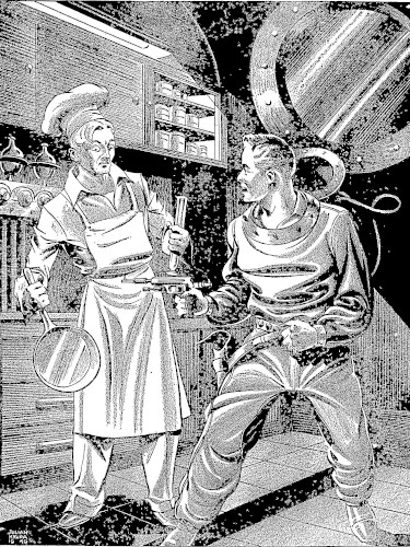 Что думали остальные члены экипажа, я понятия не имею. Да они и не говорили. Каждый из них был так занят запихиванием жратвы в свою кишку, что разговор был мертв, как марсианская селедка. Но после того, как я до последнего затянул пояс жареной пулькой, я пробрался на камбуз и столкнулся с мистером Биггсом.
