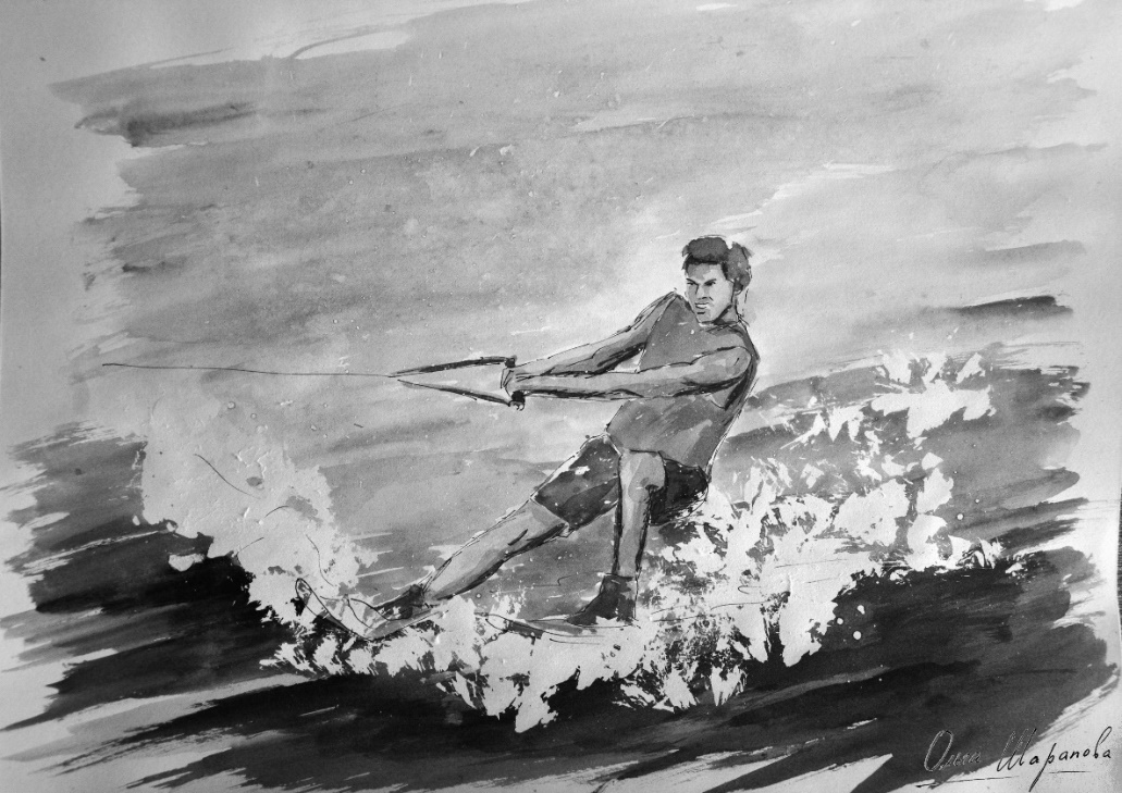 – Три круга для первого раза хватит. На старте приседай, так легче выходить из воды. А перед поворотами откидывайся на спину и старайся как можно сильнее натягивать веревку. Главное – поймать равновесие, все остальное ерунда.