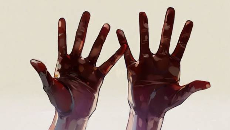 Кровь на них засохла, стала одним целым со мной. Она окрасила всё в тёмно-алый оттенок. От кончиков пальцев до конца кисти она продолжала забирать всё больше пространства, желала прорваться до локтей.