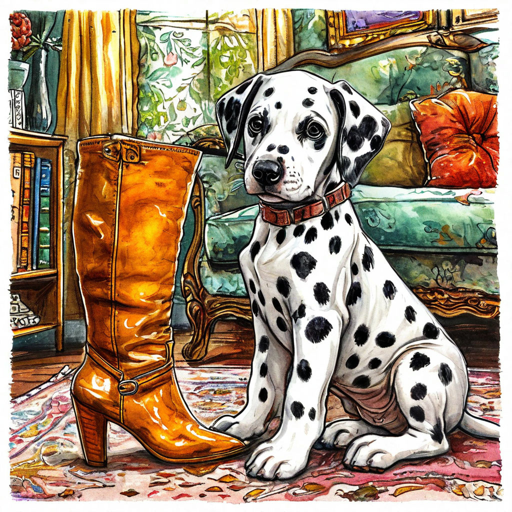 После небольшой передышки, оглядевшись вокруг и покрутив мордочкой, щенок с восторженным озорством своих цепких глазок уставился на сапог хозяйки. Тот видимо, в спешной сутолоке, беспечно был оставлен и «позабыт-позаброшен», к своему великому несчастью.