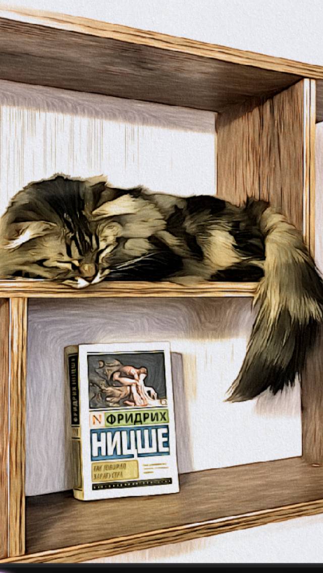 Мурка уютно расположилась на книжной полке, среди умных книжек. Мордочка лежала на передних лапках, а полусонный взгляд был направлен в сторону резвящегося щенка. Несмотря на то, что кошечка была весьма молодой и очень игривой, выражение её глазок настолько было умудрённо успокоены, что казалось жизненного опыта этой фурии не занимать вовек.