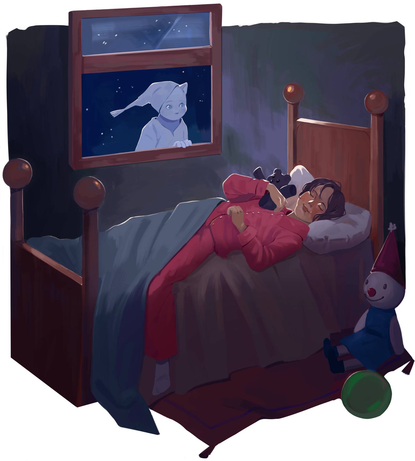 Когда мальчик с восторженным визгом подлетал к городу на огромном орле, Дрёмушка уже укладывал следующего ребёнка. Ему нельзя было торопиться – но одновременно нужно было, ведь его ждали сотни детей. Ах, всё из-за Дрёминой безответственности.