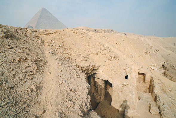 Участок для проведения работ экспедиции располагался всего в трехстах метрах к востоку от пирамиды Хеопса. Он включал вырубленную в скале гробницу Хафраанха – надсмотрщика за жрецами-уабами (то есть исполнителями ритуала очищения) пирамиды Хафра – и прилегающую к памятнику территорию, на которой находятся другие скальные гробницы древнеегипетской знати и более скромные погребения представителей среднего класса, живших в середине – второй половине III тыс. до н. э.