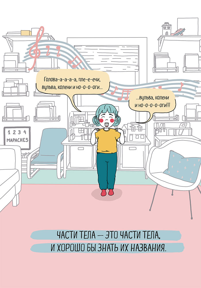 • Уши – это уши, а вульва – это вульва. Вот и все. Если вам тяжело думать о том, что у вашего ребенка может быть вагинальная смазка или эрекции, вернитесь к предыдущей главе – возможно, повторение пройденного вам поможет.