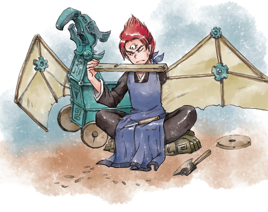 – Мен ұшатын арба жасап жатырмын, – деп, әлгі адам балтасын қолына қайта алды. Ол ағашты жонып жатып, қолындағы балтасын қойып, екі көзін жұмып, жалғыз көзімен ағаштың түзулігін көрді.