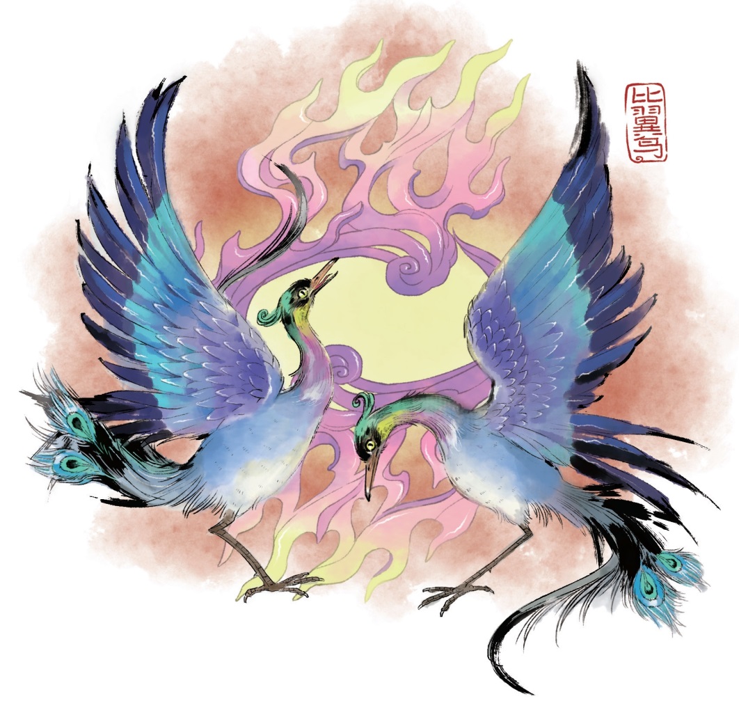 Куафу қайран қалды, бұл өзі не сиқыр?! Жаңа жалғыз құс сияқты еді, қалайша екі құсқа айналып кетті. Куафудың екі иығында екі құс. Екі құстың сөзіне оның қатты күлкісі келді. Бірақ құстарды үркітіп алам ба деп, күлмеуге тырысты. Ол көз қиығымен құстарға көз салып қарады. Құстар тым өзгеше екен, екеуінің де бір көзі, бір қанаты, бір аяғы, жарты басы бар болып шықты…