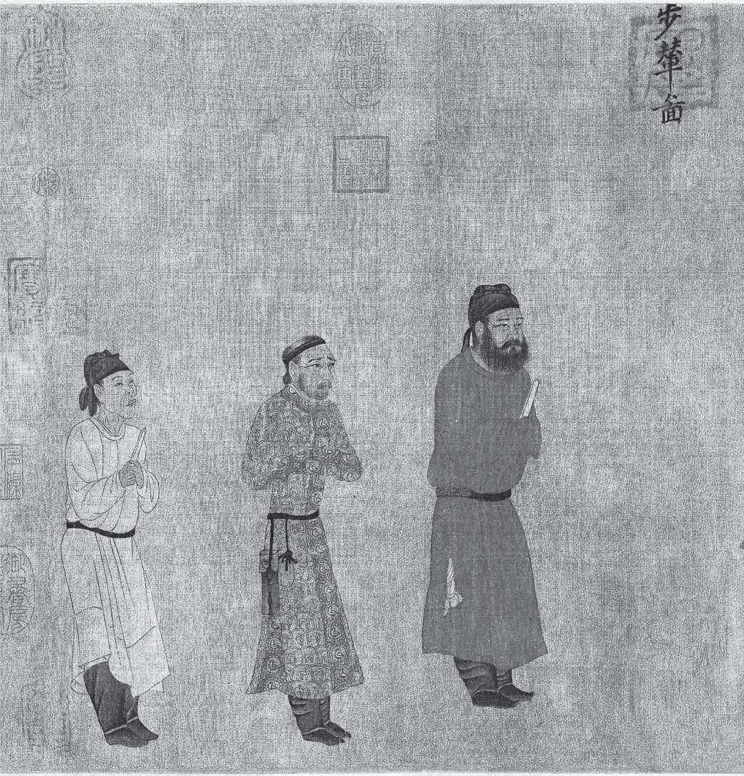 Фрагмент «Картины ручной тележки» Янь Либэня (на картинке северные варварские племена национального меньшинства в древнем Китае и кожаные сапоги)