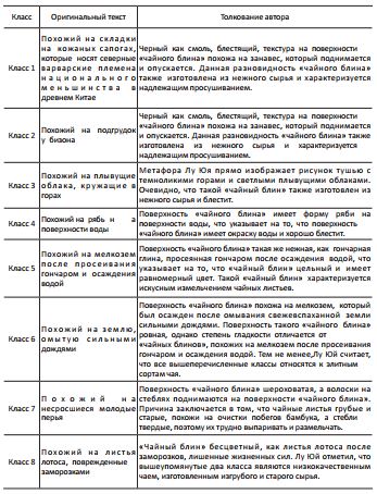 Вышеперечисленные разновидности чая на самом деле схожи с обычными травами и деревьями. Технология оценки качества чая49 также зависит от накопления опыта из поколения в поколение и из уст в уста50.