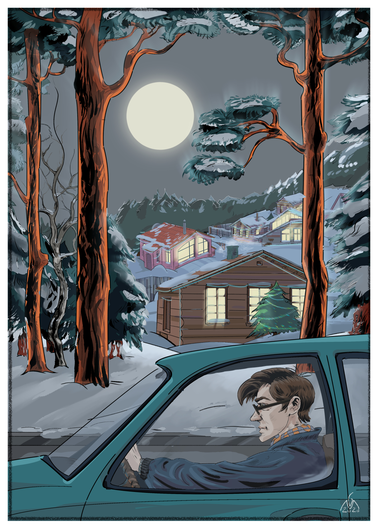 Машина шла ровно, прогретый мотор мерно и убаюкивающе урчал. За стеклом мелькали идеальные зимние виды— сугробы, окутанные снегом деревья. В темноте уютно и сдержанно светились окошки домов, а кое-где даже мигали огоньки, вывешенные на елях во двориках.