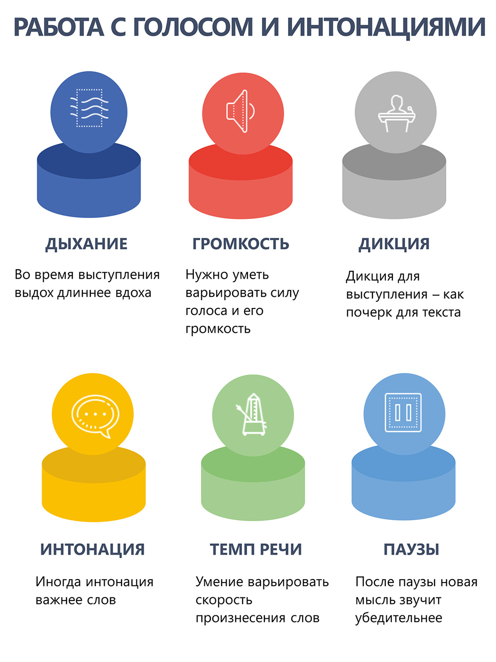 Основная проблема, которая возникает у обучающихся ораторскому искусству, связана с тем, как научиться говорить достаточно громко без большой нагрузки на голосовые связки. Обучение этому навыку кому-то покажется легким, а у кого-то может потребовать серьезных усилий и много времени, все зависит от ваших физиологических особенностей. Для достижения большой громкости без напряжения голосовых связок можно воспользоваться следующими универсальными рекомендациями: