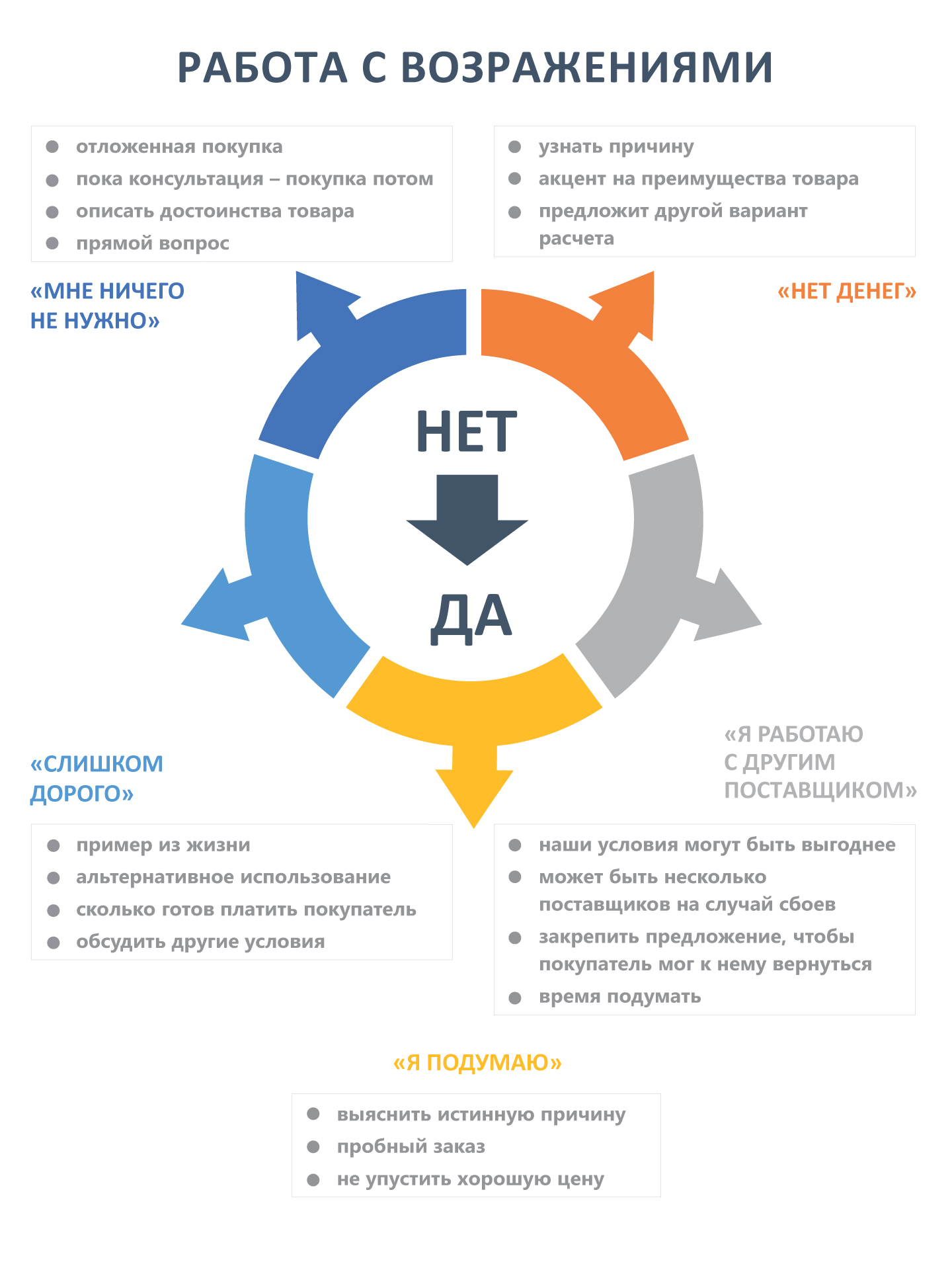 Предлагаем вам готовый алгоритм работы с возражениями в продажах:
