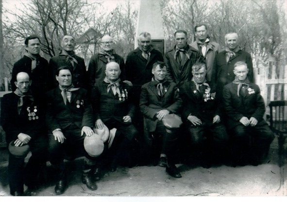 На снимке – участники войны из села Пятерыжск (Павлодарская область, Казахстан), 70-е годы. Дядя Андрей Чабан второй справа в первом ряду.