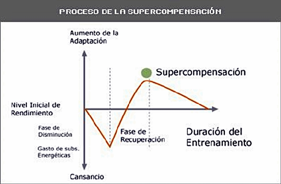 En la práctica ocurre que, en las fases inmediatamente posteriores al esfuerzo físico, las estructuras orgánicas y musculares requeridas para producirlo y soportarlo no se limitan a superar la situación de fatiga con una vuelta a las condiciones de normalidad, sino que tienen una reacción reconstructiva que los lleva a superar la situación precedente al estímulo.