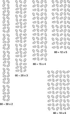 FIGURE 1.10 The different ways of dividing up 60 beans.