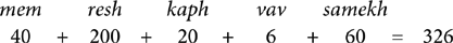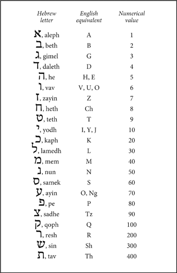 Although these are letters rather than numbers, this is how to write the number 13 in Hebrew. In the Jewish tradition of gematria, the letters in the Hebrew alphabet all have a numerical value. Here, gimel is the third letter in the alphabet and yodh is the tenth. So this combination of letters represents the number 13. Table 1.01 details the numerical values of all the letters.