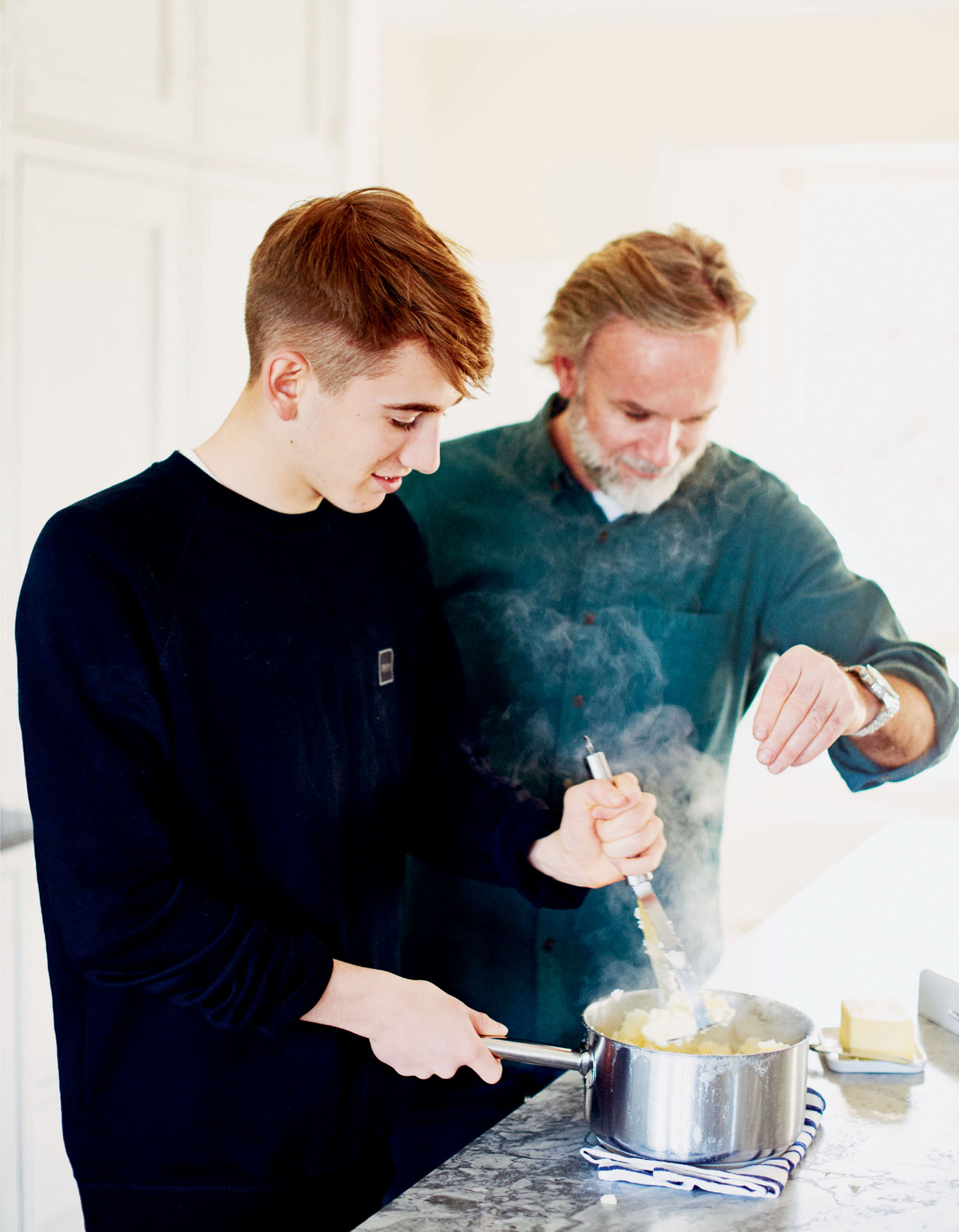I have sisters-in-law, brothers-in-law, friends and uncles who all make jam, and everyone makes it completely differently. I wanted to put jams in this book as there is a right way and a wrong way to go about jam-making, and it’s all about balance. A big pot of steaming fruit sends delicious aromas throughout the house and is the perfect way to use up overripe fruit. One of the issues we find we have to tackle as parents is the amount of added sugar in shop-bought products. Making your own preserves allows you to control the levels of sugar you add, and thus the end result on your larder shelf. Obviously, fruit that is sourer will need more sugar, but if you combine a few different ones you can get the best of both worlds.