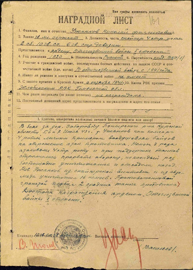 Только когда отца уже не стало, перебирая его документы, из его наградного листа я и узнал, что он был снайпером…