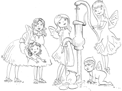 “What sort of cake would you like this year, Silver?” asked Rosie. The sisters were in the garden behind their fairy house, fetching water from Deepwater Spring.