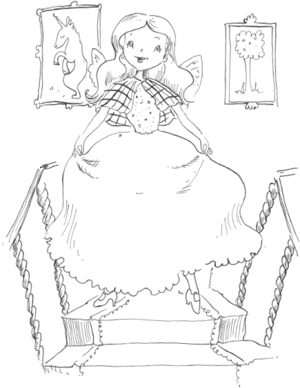 Silver was so excited! Her first ball! She’d finally hear Queen Mab’s insect orchestra! She’d walk on satin ribbons to get to the fairy palace. She’d pet the queen’s own little pony and cradle her magic white mice. She’d eat as many cupcakes as she wanted. And open presents. And stay up late, dancing till dawn.