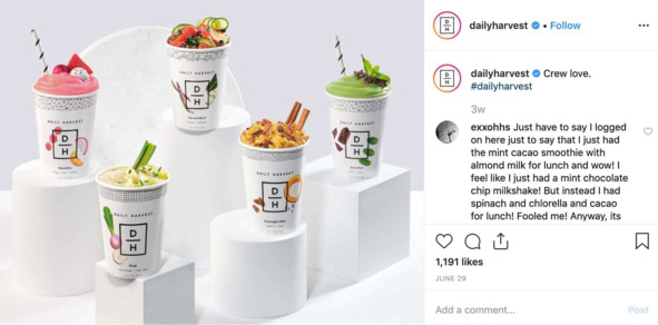 Вид товаров бренда Daily Harvest на Instagram. Автор фото: Ash Read. Источник фото: в списке литературы [1]