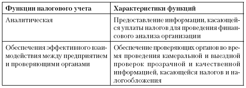 Функции налогового учета охарактеризованы в табл. 1.1.