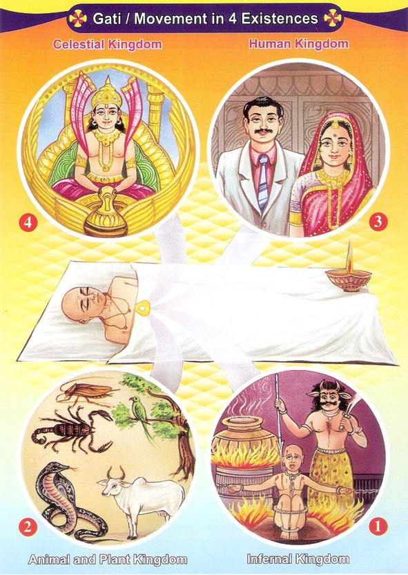 В джайнизме душа после смерти переходит в одно из четырех состояний существования в зависимости от ее кармы.