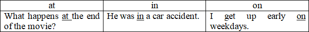 Приведу пример из обучающей таблицы с предлогами, которую я нашла в Интернете. Попробуйте найти здесь логику или какой-то «ключ», чтобы запомнить правильное использование предлогов.