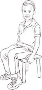 Теперь ответим на вопрос, где сидит мальчик. – The boy is sitting on the stool.