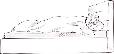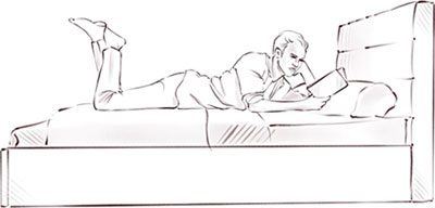Опишем другую ситуацию – кровать и человека, лежащего на ней (Рис. 7). Что скажем о положении этого человека по-английски?