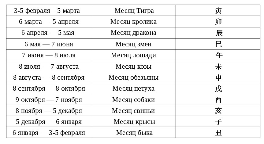 Начало каждого месяца приблизительно, поскольку первые и последние числа, как правило, могут варьироваться. Поэтому если у вас день рождения приходится на 3-8 число, лучше обратиться к калькулятору бацзы八子.