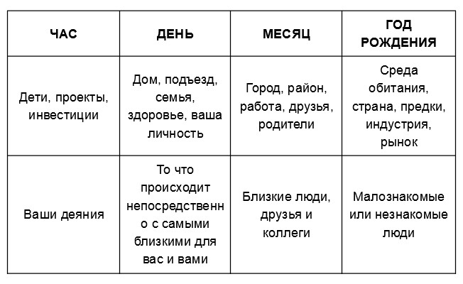 Для того, чтобы узнать свой набор из 4 зверушек, вы можете посмотреть в моем калькуляторе бацзы. Либо вы можете посмотреть свой год, месяц и час по справочным материалам в этой книге. День без калькулятора вы посчитать не сможете. Энергии года, месяца и часа – фиксированные.