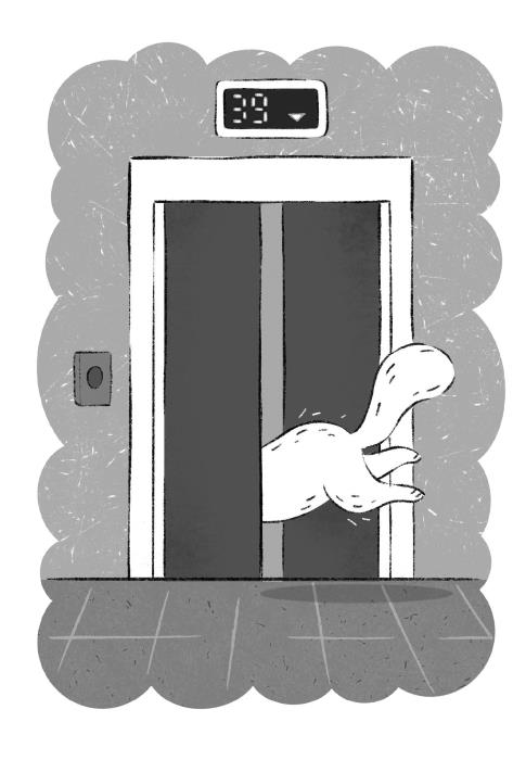 В панике я нажал на первый этаж, не спросив, куда ей надо ехать. И когда дверь лифта почти закрылась, я успел мельком заметить зловещую белую фигуру бабули, которая бежала к лифту и кричала: