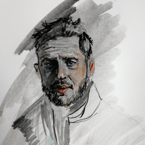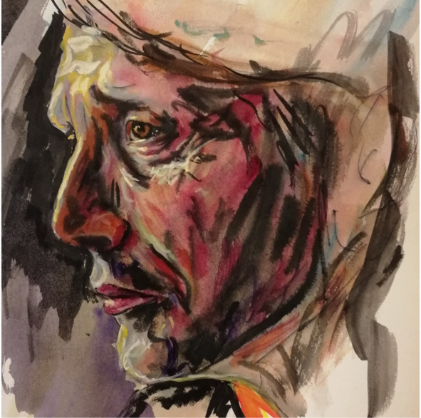 Блестящая макушка, седая короткая бородка, почти щетина. Мягкие губы были влажными от чая и джема. Седые усы нависали над ними. Зубы были жемчужно белыми и ровными, что выдавало их безусловно искусственное происхождение. Длинный, изогнутый утиный нос смешно нависал над испачканной сладостью верхней губой.