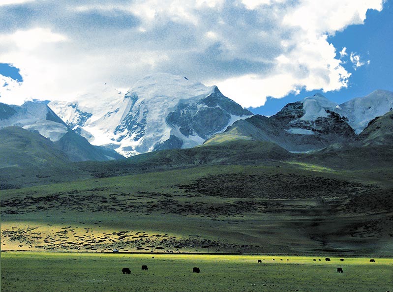 Я быстро соскочил с верхней полки посмотреть в окно, и (мы уже на Тибете!) весь день с самого раннего утра мы наблюдали через окна вагона за захватывающими дух горными красотами. Въезд на Тибетское плато означал, что мы уже забрались очень высоко. Выехав из низинного Пекина, в середине вторых суток мы уже оказались на высоте около 5000 метров над уровнем моря. Для того, чтобы никого не мучил столь резкий перепад в высоте, в каждом купе возле полок был приспособлен персональный аппарат для подкачки кислорода, недостаток которого весьма ощущался. По запросу этот аппарат с громким шипением начинал выпускать поток газа. Дышать становилось легче, но голова побаливала.