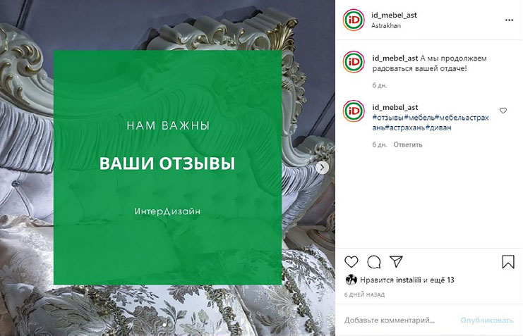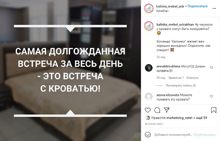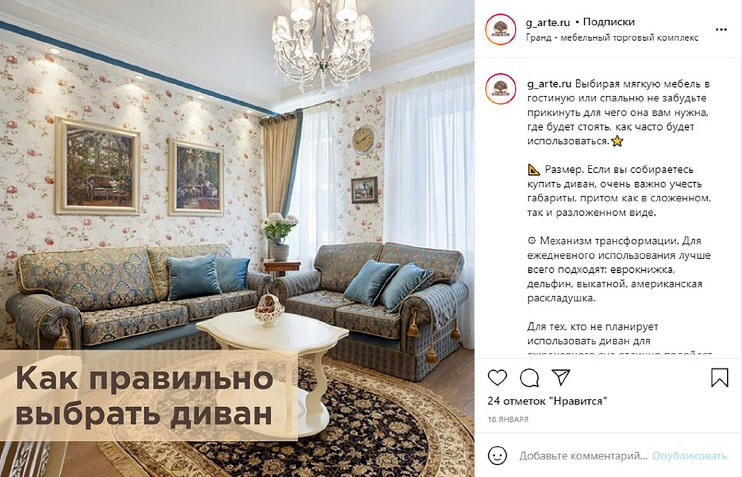 На какие темы и про что писать, какие делать рубрики, какие фишки использовать, у вас будут сильные и слабые стороны бизнеса, боли и страхи аудитории. Основываясь на этих данных, выстраивайте свою стратегию продвижения. Необходимо думать, как привлекать аудиторию не только своим товаром, но и прогревать ее историей о своей компании и только потом делать предложение о покупке вашей мебели.