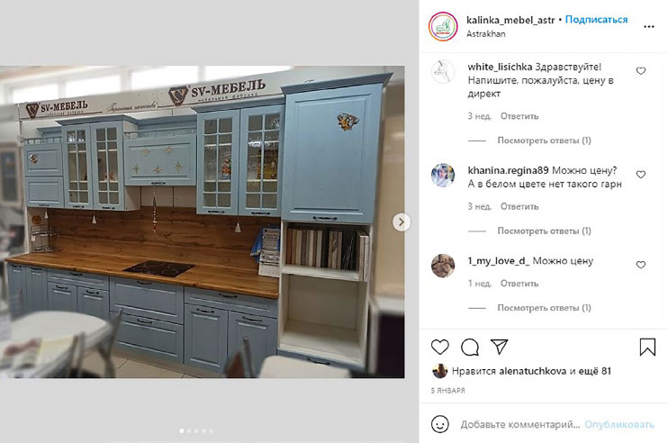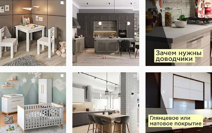 Вы можете взять фото своей мебели в интерьере и добавить на него 7–12 предметов, животных или смайлов и попросить подписчиков посчитать, сколько их на фотографии, или найти отличия. А еще найдите фото с кухней, на которой что-то сделано не так, как должно быть, и попросите подписчиков найти неправильную работу мастера. Или переделайте один из популярных мемов под свою тему. Если у вас более дорогой сегмент, показывайте самые последние решения. Поле для творчества у вас огромное, придумывайте свои идеи и воплощайте их на 100 % качества в изображении и тексте.