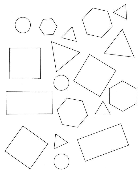 Сосчитайте фигуры: прямоугольники, треугольники, круги, шестиугольники, квадраты.