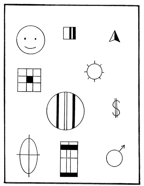 Когда выйдет время, закройте книгу, запишите или зарисуйте на листе бумаги все символы и геометрические фигуры, которые вы запомнили.