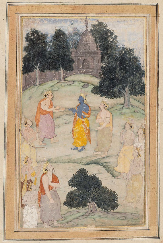 Кришна, аватара Вишну, выступает посредником во имя мира, чтобы предотвратить войну на Курукшетре Махабхараты.
