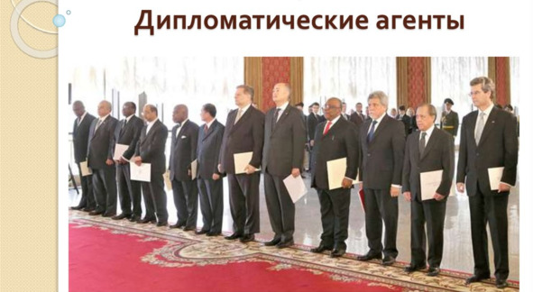 (3) поверенные в делах, аккредитованные при министрах иностранных дел. А временный поверенный в делах является заместителем временно отсутствующего главы миссии.