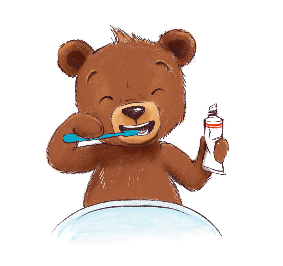 Теперь Тим всегда чистит зубки утром и вечером, и больше они не болят, а медвежонок кушает свой любимый мед!