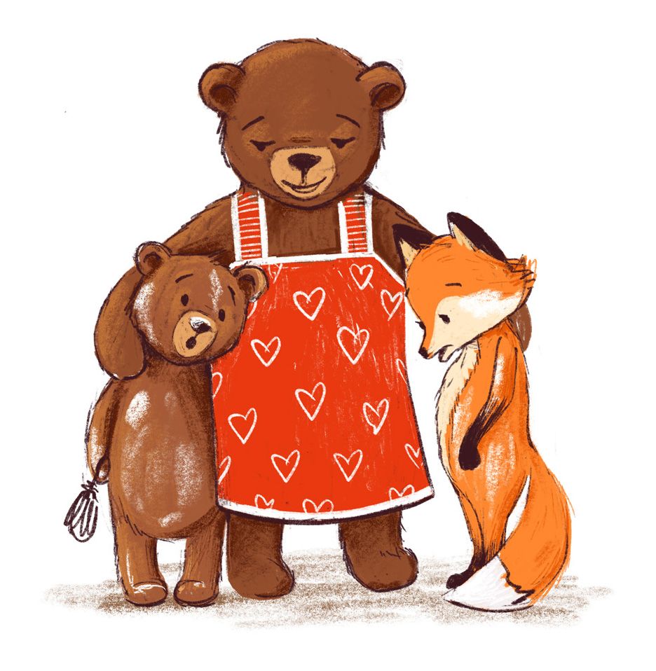 Когда пришла мама, она увидела, что зверята очень расстроены. Они рассказали, как хотели испечь торт и ничего не получилось, потому что в книге кулинарных рецептов какие-то непонятные значки. Мама сказала: "Это не значки, а буквы. Когда вы их выучите, сможете прочитать все книги". Медвежонок с лисенком обрадовались и помчались учить алфавит.