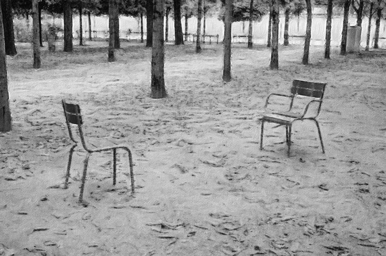 Жак поставил стул рядом со своим креслом, отличавшимся от первого лишь двумя железными ободами подлокотников, и с удовлетворением оглядел сцену грядущей драмы. Каштаны тревожно шумели, роняя проеденные ржавчиной листья. Выкрашенные зеленой краской стулья к осени, под стать деревьям, слегка облетели, местами оголив опаленный сыростью металл.