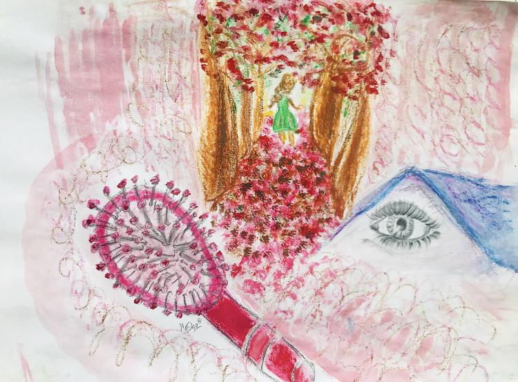 Зарывшись с головой ещё глубже, сразу в рубашку, плед и кофту (как будто это могло спасти меня от опасного мира и реальности), я почувствовала, что так все же немного лучше. Зуб ещё болел. Но скорее неприятно ныл и чесался. Это пугало меня, хотя количество имеющихся лекарств обнадеживало. После бессонной ночи очень хотелось спать, но никак не спалось. Я силилась, но не могла уснуть. Открыв глаза, из-под своего укрытия я увидела расческу. Она тоже, как и я, «пряталась» от мира в белоснежной синеве простыней. Ее пластиковые розовые щетинки с такого ракурса казались лесом, в котором все деревья были с круглыми верхушками. Сразу вспомнились сказки и фильмы, где герои вдруг по всяческим волшебным причинам становились очень маленькими. И я подумала, как было бы здорово вот так же уменьшится и спрятаться от всего в этом розовом лесу.